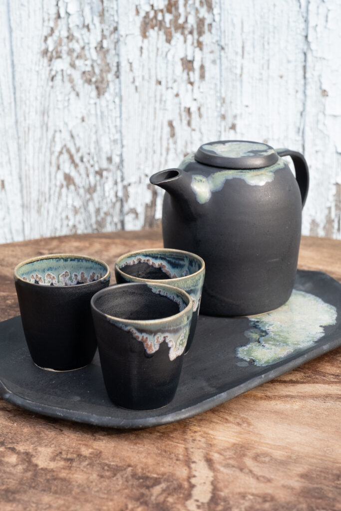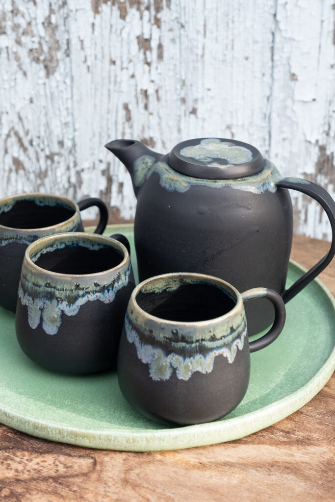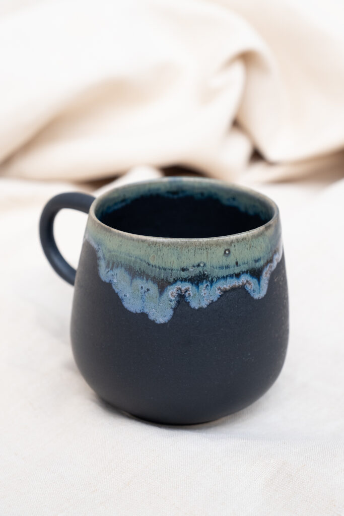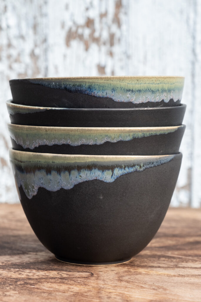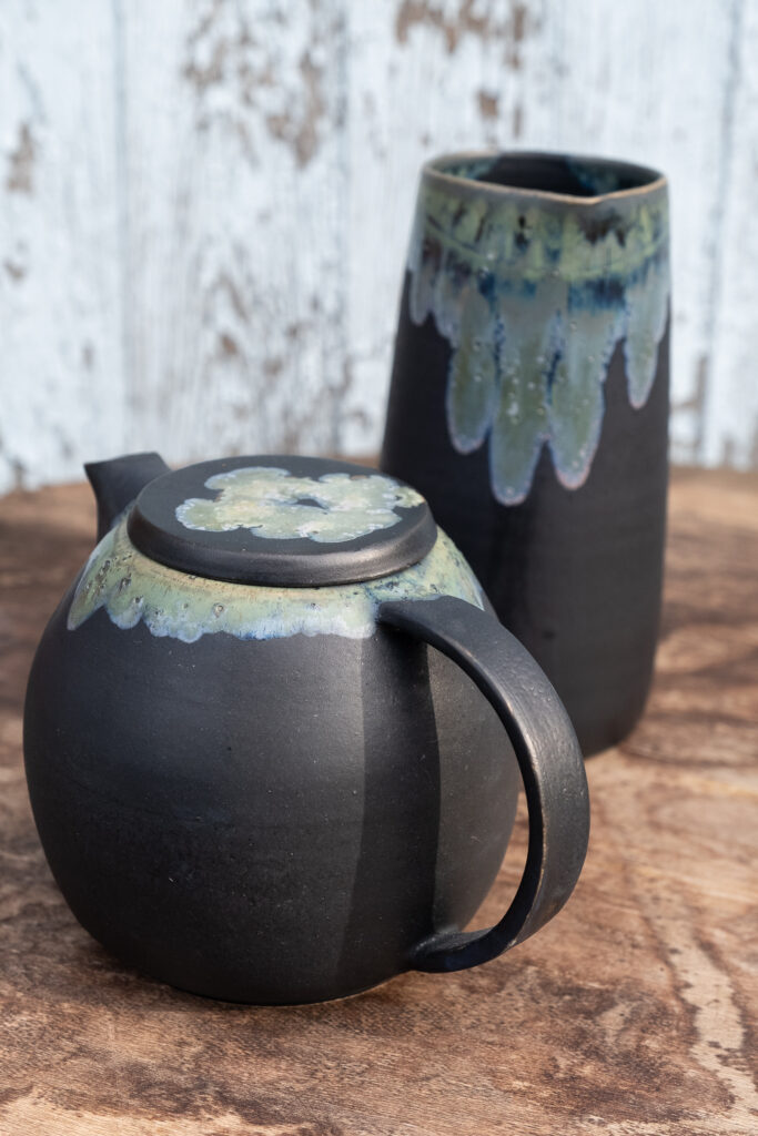 Grès blanc lisse – Émail Noir Satiné et Céladon qui coule