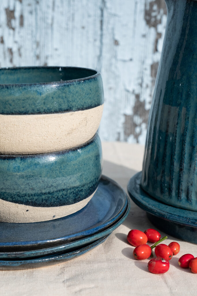 Grès blanc lisse – Émaux Pacifique et Céladon